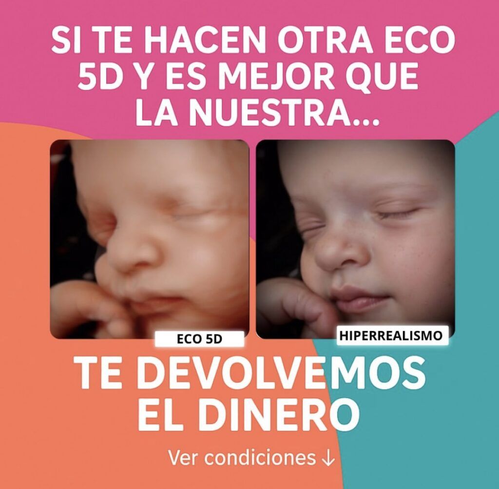 - La devolución se aplicará solo al importe de la ecografía, no a productos o servicios adicionales (como grabaciones, fotos impresas, regalos o complementos).